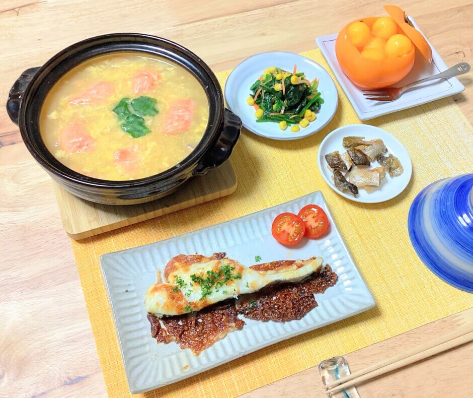 鮭雑炊と鱈のチーズ焼きの完成です!